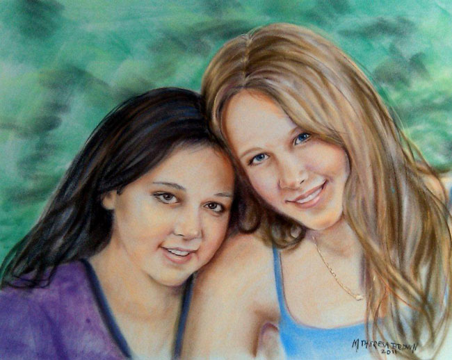 sister portrait was created from supplied photos by their mother as a